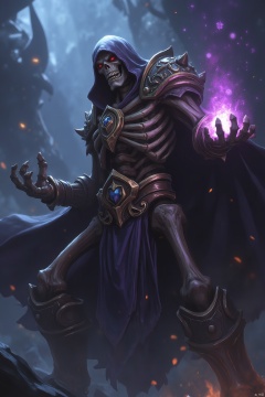 skeleton, skeleton, glowing skull, mage, cloak, cg rendering, world of warcraft