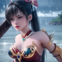 <lora:799-DA-神墓-楚钰:0.8>, (,1girl, ,best quality, ),, ,ultra detailed 8k cg,   ,masterpiece((((1girl, solo,  , ,solo focus, wet,sweat, ocean,rain, water drop, )))) (, , sweatdrop, flying sweatdrops, sweating profusely,colorful drop \(module\), )   clean, masterpiece,     cinematic lighting, cinematic bloom,   , unreal, science fiction, luxury, jewelry, diamond, gold, pearl, gem, sapphire, ruby, emerald, intricate detail, delicate pattern, charming, alluring, seductive, erotic, enchanting, hair ornament, necklace, earrings, bracelet, armlet,halo,