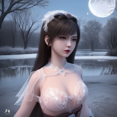 <lora:799-DA-神墓-楚钰:0.8>, (,1girl, ,best quality, ),,  ,ultra realistic 8k cg, ,masterpiece, (( , )),, ,fiction,mole,,      ,(cleavage),,  (),  ,see-through, lace, (((, solo, moon, , bare_tree, )))(cleavage),,