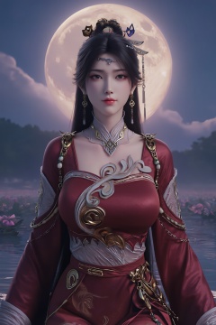 ultra realistic 8k cg, picture-perfect face, flawless, clean, masterpiece, professional artwork, famous artwork, cinematic lighting, cinematic bloom, perfect face, beautiful face, beautiful eyes, fantasy, dreamlike, unreal, science fiction, huge breasts, beautiful clothes, absurdly long hair, very long hair, (rich:1.4), prestige, luxury, jewelry, diamond, gold, pearl, gem, sapphire, ruby, emerald, intricate detail, delicate pattern, charming, alluring, seductive, erotic, enchanting, hair ornament, necklace, earrings, bracelet, armlet,((1girl, )) ,JMRXreddress,chinese clothes, a girl,moon,black hair,long hair,water,sky,solo,flower,night,cloud,purple element,front lighting,sunshine shining on the face,flowersea,,fantasticscenes,,,sit down,extend one legstraight,lotus,, lxq, 1 girl,Full body photo, showing legs, showing feet,Xluxueqi,Xjinpinger
