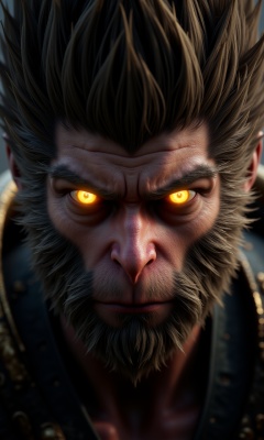 JQZX, Sun WuKong, wukong, front poster, glowing golden eyes, sneer, close up, (art), light and shadow, depth of field, surrealist style, 8k pixel, hd