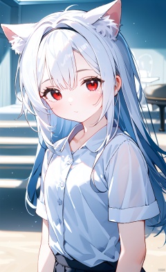 masterpiece,8k,best quality,1girl,(solo),kawaii,(depth of field),cat ears,white hair,red eyes