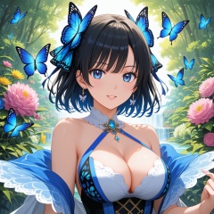 (,1girl, ,best quality, ),,,anime,(masterpiece, top quality, best quality, official art, beautiful and aesthetic:1.2), (1girl)	, , (cleavage),, extreme detailed,(fractal art:1.3),colorful, flowers ,highest detailed,()    (cleavage),butterfly,  (),