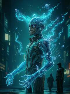 DonMFr4ctur3dD1ffFXthe, diffusing, male virtual reality designer, bio-luminary spirit- phosphorescent, wispy entities floating with ethereal luminescence, eighteen delicate, latin american, turquoise eyes, unusual ears, cleft chin, overbite jaw, pear face shape, imperial mustache , orchid side part hair, nervousness, showing off futuristic clothing or wearable technology., wearing olivegreen bionic chinos, periwinkle digital camouflage texture cybernetic material plasma-lace quarter-zip sweater, , reacting with awe or caution upon meeting an extraterrestrial being., futuristic landscapes, cyberpunk streets, shadowy figures lurking in the dark corners