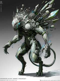 DonMFr4ctur3dD1ffFXthe, geometric shapes, sfw,  massive otherworldly augmented amorphous irregular person,  padded appendages,  curved-tailed, shaggy fur,    mechanical wings made of gears and cogs and clockwork,  #   # proboscis, green,