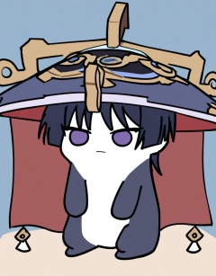masterpiece, best quality, <lora:ponntaitachi-xl:1>,chibi,no humans,scaramouche \(genshin impact\), hat,jingasa