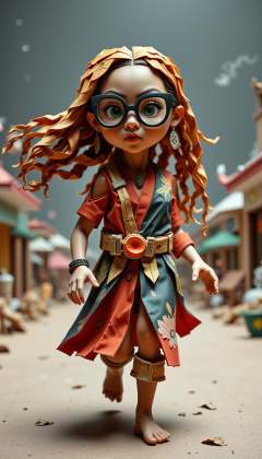 <lora:PaperStyleFlux:1>Made out of paper and origami, a PaperStyle Fashion photography, Native American, mid-twenty, woman, Medium hair, Marmaid waves hair, Dreadlocks, Blonde hair, Hairband, Asian eyes shape, Green eyes, Safety glasses, Large lips, Burgundy lips, Round with Soft Cheekbones face, Party makeup, Fearful, Tiny body, Running, Look into the distance, Bohemian dress, Ambient light, Scattering, starlight, Drizzle, Neutral gray background, Sunset background, Pentax K-1 Mark II, Point of view shot, Worm's-eye view