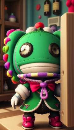 <lora:SackboyCharacterFlux:1> sackbaby Cosmo from The Fairly OddParents, smiling expression, woven, stitches, stitching, in a pose: ar interaction, character gestures with one hand in front of them, as if manipulating augmented reality objects, in location Coffin