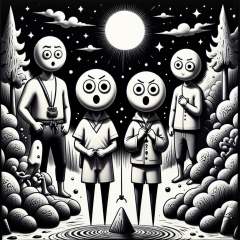 <lora:DarkCharcoalFlux:1>Black background, white chalk, A monochrome dark rough charcoal sketch of a group of ***** friends skinny-dipping in a secluded lake under the moonlight, reveling in the cool water, black and white