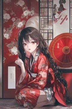 anime artwork (Japan anime), fantasy theme, full body view of anime lady, long hair, pretty face, petite body, yukata, kimono, modelling poses, sitting pose, private room, natural lighting, high dynamic range, medium contrast, vibrant colors, masterpiece output, top quality, high resolution, . anime style, key visual, vibrant, studio anime, highly detailed