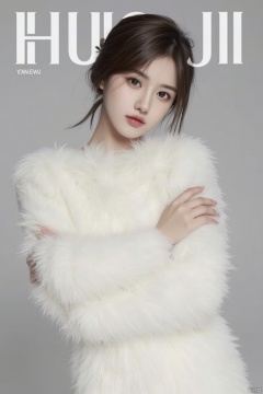 On the cover of the magazine, with the English letters HUA JI written on it, a Korean beauty wearing a white coat stands with her hands on her hips facing the camera