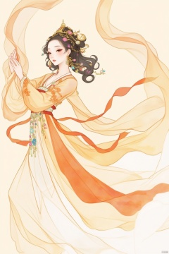 1girl, solo, long hair, black hair, hair ornament, long sleeves, dress, ribbon, holding, jewelry, braid, flower, earrings, hair flower, floating hair, chinese clothes, tassel, hair rings, beads, shawl, dancing, hanfu,chinese clothe,起风了敦煌