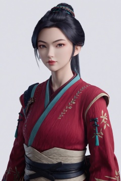 1girl, solo,sheath, japanese clothes, red kimono, long sleeves, simple background, white background, upper body, standing, looking at viewer,