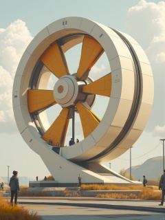 adorned with a white base and a black rim. The wheel-shaped structure is encircled by a series of thin