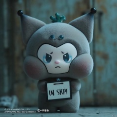 Blind box doll,solo, standing, full body, tears, blurry, pokemon \(creature\), no humans, frown, crying, crying with eyes open, sign, sad