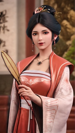 1girl,jewelry,chinese clothes,solo,earrings,black hair,necklace,blurry background,hanfu,hair ornament,holding,dress,looking at viewer,upper body,realistic,long sleeves,blurry,wide sleeves,black eyes,<lora:lora.by_tusi:0.8>,<lora:kong_皮肤纹理V2.0:0.7>,