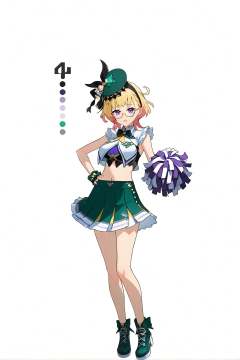 score_9, score_8_up, score_7_up, score_anime, nai3, <lora:YLI 0.1v:0.5>, <lora:style1:0.5>, *****, 8k, best quality, masterpiece, (ultra-detailed), (white background,simple background), solo, (full body:1.1), looking at viewer, <lora:Emilie-a3-Tanger:0.6>, Emilie, 1girl, hat, blonde hair, glasses, green headwear, purple eyes, multicolored hair, cheerleader,