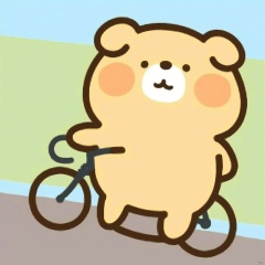 bestquality, 1 cartoon bear, no human, solo, smile, round face, small black eyes, dumpy body, cartoon, riding a bicycle.