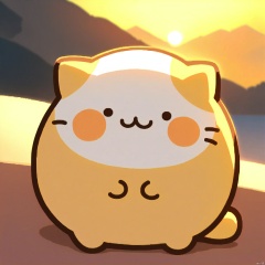 bestquality, 1 cartoon cat, no human, solo, smile, round face, small black eyes, dumpy body, cartoon, basking in the sun, cartoon