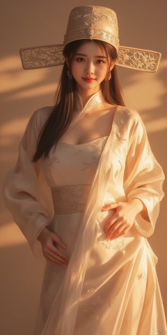 A radiant Asian woman, hat,visibly pregnant, stands tall with a warm, inviting smile. Soft, gradient lighting envelops her, casting a golden glow on her features. Her full figure exudes joy and vitality as she confidently poses against a subtle background. Gentle contour lights dance across her skin, infusing her with an otherworldly softness. The artful composition captures the essence of motherhood, distilling its beauty into a single, award-winning frame.Chinese clothes