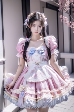 A young Asian woman wearing a flower wreath,a woman,dressed in a white strapless dress,is holding a white rabbit in her left hand. Her right arm is draped in a light pink frock,adorned with a white ribbon. The woman's left arm is positioned in front of a white bed with a pink bedspread on it,adding a touch of color to the scene. The backdrop,a pink wall,is adorned with white windows,creating a stark contrast to the woman's white dress. A chandelier is adorned in the upper right corner of the frame,,,<lora:zhangyuzi:1>,<lora:sweet_attire_style1_v1:0.8>