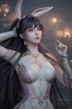 depth of field,a person's face with striking gold eyeshadow and shimmering golden highlights,Handed in chains,rabbit ears,