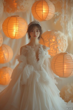 A Bride in a Fairy Tale Setting, Surrounded by Paper Lanterns.,Atmospheric lanterns