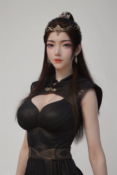 score_9,score_8_up,score_7_up,incredibly absurdres,<lora:SF_YuanYaoBlackClothes_Pony-000004:0.7>,1girl,solo,black dress,large breasts,lips,jewelry,earring,long hair,looking at viewer,white background,