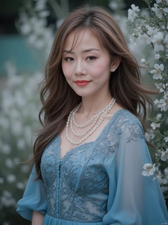 (Good structure),HDR,UHD,8K,A real person,Highly detailed,best quality,masterpiece,1girl,realistic,Highly detailed,(EOS R8, 50mm, F1.2, 8K, RAW photo:1.2),ultra realistic 8k,(best illumination, best shadow, extremely delicate and beautiful),(official art, beautiful and aesthetic:1.2),solo,1girl,long hair,Wind,flowing hair,kind smile,pose for picture,looking_at_viewer,perfect body,wedding dress,(blue dress),(blue theme),jewelry,Garden background,(Floating flower),flowers, Lego minifigure