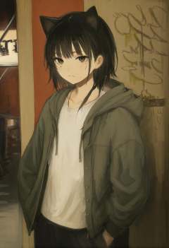 masterpiece, best quality,1girl, animal ears, solo, shirt, jacket, hands in pockets, pants, black eyes, black hair, open clothes, cat ears, white shirt, red background, short hair, open jacket, hood, closed mouth, hair between eyes, looking at viewer, cowboy shot, hooded jacket, hood down, mole under eye, mole, standing, cat girl, long sleeves, expressionless <lora:iwzryXLlokr4f-000140:0.95>