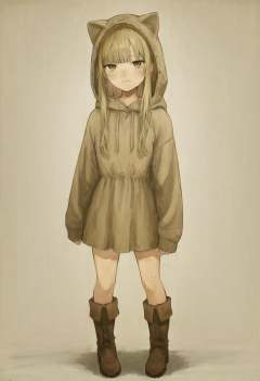 masterpiece, best quality,1girl, solo, boots, blonde hair, hood, full body, freckles, dress, simple background, blunt bangs, white background, animal hood, short hair, brown eyes, standing, cat hood, long sleeves, looking at viewer, hood up, :<, animal ears, closed mouth, blush <lora:iwzryXLlokr4f-000140:0.95>