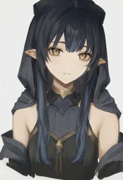 masterpiece, best quality,1girl, layla \(genshin impact\), solo, pointy ears, drill sidelocks, blue hair, hair between eyes, drill hair, white background, long hair, hood, sidelocks, yellow eyes, blue hood, simple background, looking at viewer, hood up, cropped shoulders, portrait, closed mouth, bright pupils, bare shoulders, white pupils, cropped torso, jewelry, neck ring, upper body, bags under eyes, gold choker <lora:iwzryXLlokr4f-000140:0.95>