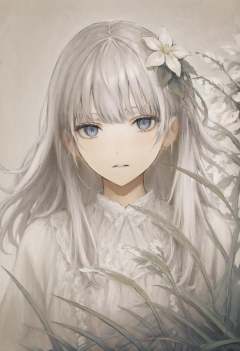 masterpiece, best quality,solo, 1girl, flower, long hair, looking at viewer, blue eyes, hair between eyes, white background, portrait, simple background, floating hair, white flower, white hair <lora:iwzryXLlokr4f-000140:0.95>