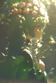 masterpiece,best quality, score_9,score_8,score_7_up,score_6_up,solo, 1girl, long hair, flower, hatsune miku, dappled sunlight, blurry <lora:konyakarasueXLlokr4f-000140:0.95>