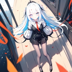 (masterpiece),(best quality),illustration,ultra detailed,hdr,Depth of field,(colorful),1girl, solo, looking at viewer, blush, smile, long hair,loli,pantyhose,full body,white hair,[artist:wlop],[[artist:sheya]],artist:hiten_(hitenkei),