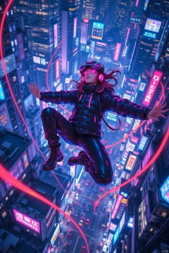 close-up, masterpiece, best quality,Cyberworld,cyber 1 girls,1girl,courier service, Floating in the air.,dj,tail,,100 drone,shooting star,ultra detail,8k,near future,akihabara,,otaku boy,fisheye_lens,Very detailed,view from head-mounted display,vivid color,,neon city, cityscape,night,