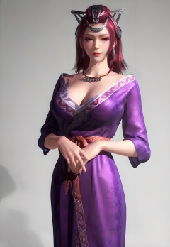 score_9,score_8_up,score_7_up,<lora:SF_TianMi_Pony-000004:0.7>,1girl,solo,standing,purple dress,breasts,large breasts,red lips,jewelry,hair ornament,earring,looking at viewer,white background,