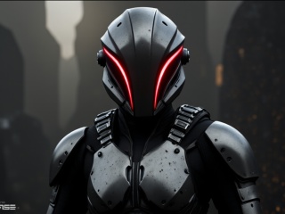 FuturisticWarrior style,, The image is a digital art piece that appears to be a futuristic or sci-fi scene. It shows a close-up of a gallente assault's head and upper body, with a metallic armor-like appearance. The gallente assault's face is covered in red eyes, giving it a futuristic and ominous look. The background is a dark, cloudy sky with a hint of smoke or dust. The overall mood of the image is dark and ominous. The word "DUST" is written in white text on the bottom right corner, with the word "EVE" in a larger font size than the rest of the text.