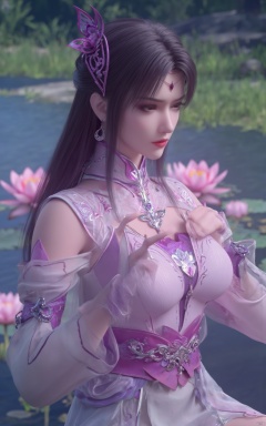 Masterpiece, the best quality, high quality,1girl,(huge breasts:1.59),(A pond full of pink lotus flowers:1.39),Xhaiqinyan,Xlimuwan,Xxiaoyixian,Xyafei,XMGqipao,Xxueshifu