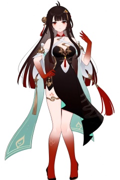 8k, best quality, masterpiece, (ultra-detailed), (high detailed skin), (by nanoless, by misumi \(macaroni\):0.25), full body, full shot, standing, looking at viewer, (solo:1.2), simple background, white background, hand on own hip, <lora:lingsha-a3-Tanger-000014:0.8>, lingsha, default clothes, red hands, red feet, black dress, 1girl, long hair, black hair, breasts, ahoge, A full-body portrait of a young girl, standing gracefully, pastel art style, high-key lighting, shoujo manga influence, hd quality, delicate details,