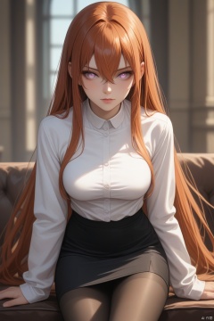 score_9,score_8_up,score_7_up,score_6_up, source anime,masterpiece,best quality,ultra detailed eyes BREAK 1girl,solo,skirt,pantyhose,looking at viewer,breasts,bangs,leaning forward,pencil skirt,shirt,black pantyhose,very long hair,gradient eyes,long sleeves,medium breasts,blurry,hair between eyes,sitting,(cropped_shirt:1.1),