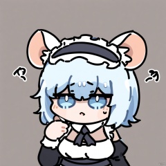 1girl,ratkin,show ears, solo,upper body,mouse girl,white mouse ears,mouse ear fluff,,, ,,chibi, ,,solo,,,,maid,, ,light blue hair,,short hair,,, maid headdress, black headwear,,light blue eyes ,