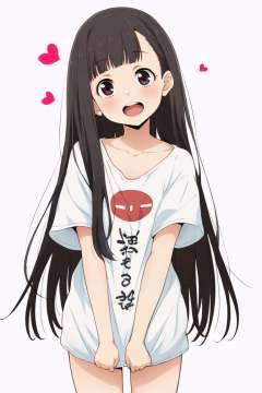 <lora:make_heroine_ga_oo_sugiru_style_ill-xl-v0.1-000013:1>,masterpiece,best quality,1girl, nukumizu_kaju, solo, shirt, white_background, simple_background, heart, smile, looking_at_viewer, open_mouth, white_shirt, blush, short_sleeves, oversized_clothes, collarbone, upper_teeth_only, t-shirt, teeth, cowboy_shot, :d, clothes_writing, head_tilt, standing