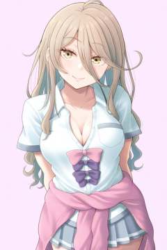 <lora:make_heroine_ga_oo_sugiru_style_ill-xl-v0.1-000013:1>,masterpiece,best quality,1girl, shikiya_yumeko, solo, skirt, breasts, shirt, clothes_around_waist, iruma_miu, bow, smile, cleavage, pleated_skirt, white_shirt, sweater_around_waist, large_breasts, looking_at_viewer, simple_background, bowtie, collared_shirt, collarbone, cowboy_shot, school_uniform, short_sleeves, sweater, miniskirt, dress_shirt, closed_mouth