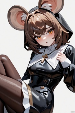1girl,ratkin,show ears, solo,upper body,mouse girl,white mouse ears,mouse ear fluff,,,, nun,dress,long sleeves,black dress,brown pantyhose,black footwear,shoes,cross necklace,jewelry, simple background,white background, masterpiece,newest,best quality,very aesthetic,absurdres, ,