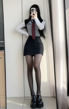 killer,1girl,selfie,solo,phone,pantyhose,skirt,necktie,black hair,pencil skirt,long hair,cosplay photo,legs,shoes,mirror,school uniform,cosplay,mask,long sleeves,miniskirt,hand on hip,taking picture,uniform,standing,shirt,glasses,reflection,sheer legwear,full body,camera,real life,holding,tekken,striped,knees,vest,identity censor,indoors,office lady,black skirt,black eyes,thighs,bare legs,striped necktie,dress shirt,curtains,<lora:killer性感黑丝网红美女v1.0:0.75>,black pantyhose,