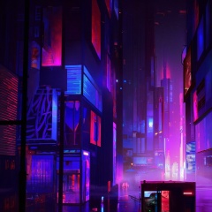 A breathtaking cyberpunk cityscape at night, with towering futuristic skyscrapers illuminated by neon lights in shades of purple, blue, and pink. The buildings are adorned with glowing signs and holographic advertisements, casting luminous reflections on the foggy streets below. The scene exudes a sense of high-tech dystopia, with a dark sky filled with stars in the background, contrasting the vibrant city lights. The atmosphere is moody, with a blend of technology and mystery, reminiscent of classic cyberpunk aesthetics. Adding a sense of grandeur and dominance to the city skyline and atmospheric style of devinellekurtz, <lora:devinellekurtz-style-v3:1.2>