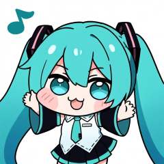 masterpiece,best quality,<lora:doro_illu-xl-v0.1-000063:1>,(chibi,:3,doro),1girl,hatsune miku,twintails,necktie,solo,skirt,shirt,aqua hair,black skirt,aqua eyes,detached sleeves,long hair,sleeveless,white shirt,open mouth,white background,aqua necktie,black sleeves,sleeveless shirt,outstretched arms,very long hair,blush stickers,pleated skirt,hair ornament,miniskirt,bare shoulders,musical note,