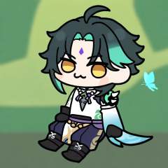 masterpiece,best quality,<lora:doro_illu-xl-v0.1-000063:1>,(chibi,:3,doro),xiao_\(genshin_impact\),1boy,male_focus,solo,tattoo,jewelry,yellow_eyes,sitting,gloves,necklace,multicolored_hair,beads,butterfly,bug,bead_necklace,arm_tattoo,facial_mark,forehead_mark,black_hair,green_hair,ahoge,closed_mouth,black_gloves,blue_butterfly,detached_sleeves,armor,shoulder_armor,tassel,single_detached_sleeve,two-tone_hair,pants,boots,blurry,black_footwear,spikes,