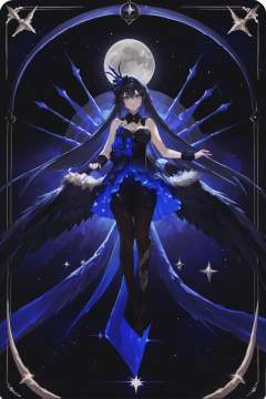 (by nanoless, by misumi \(macaroni\):0.25), original, normal_quality, (by xilmo, by modare, by reoen:1.1), (hyperrealistic:1.1), (high_contrast:1.1), (holy_(\theme\):1.2), (card_\(theme\):1.1), solo, long hair, fur trim, large breasts, (black-color-scheme:1.1), character card, abstract sun, moon and stars, thick line, <lora:xierssyy-atw-Tanger:0.7>, xier, yongye, second clothes, black sleeveless dress, black hair ornament, black low wings, 1girl, blue eyes, long hair, black hair, black pantyhose, bare shoulders, seele vollerei, bangs, floating, dynamic pose, <lora:neg101-000008:0.5>, murals, holy light, mural moon, simple black background, angels come, stars, card border, frame pattern,